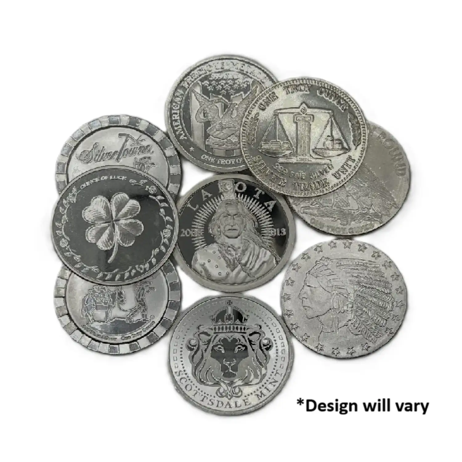 The spot price of silver tends to be more volatile than the spot price of gold and is one of the reasons that both silver premiums and spreads tend to be wider for silver coins and silver bars. Each 1 oz Generic Silver Round is composed of one troy ounce of .999 fine silver. These silver rounds are 100% authentic.