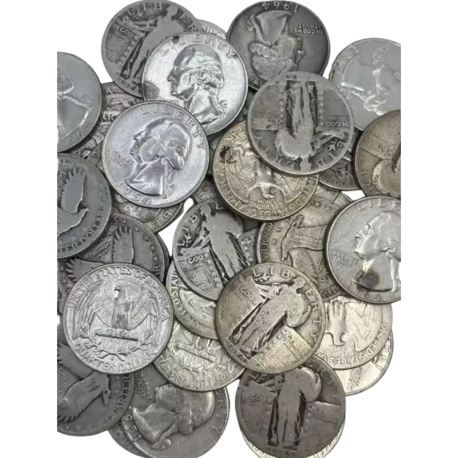 The coins you receive will be United States quarters of our choice: Barber, Standing Liberty or Washington (1964 and earlier).