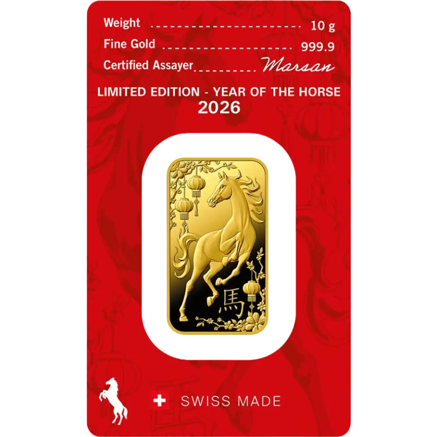 Produced with a commitment to excellence, each bar features a unique design that symbolizes the attributes of the Horse, representing strength, loyalty, and vigor. Whether you are an astute investor or a collector of fine bullion, this bar offers both aesthetic appeal and intrinsic value. With a weight of 10 grams, this gold bar is an ideal entry point into precious metals investing, making it perfect for both seasoned investors and newcomers alike.