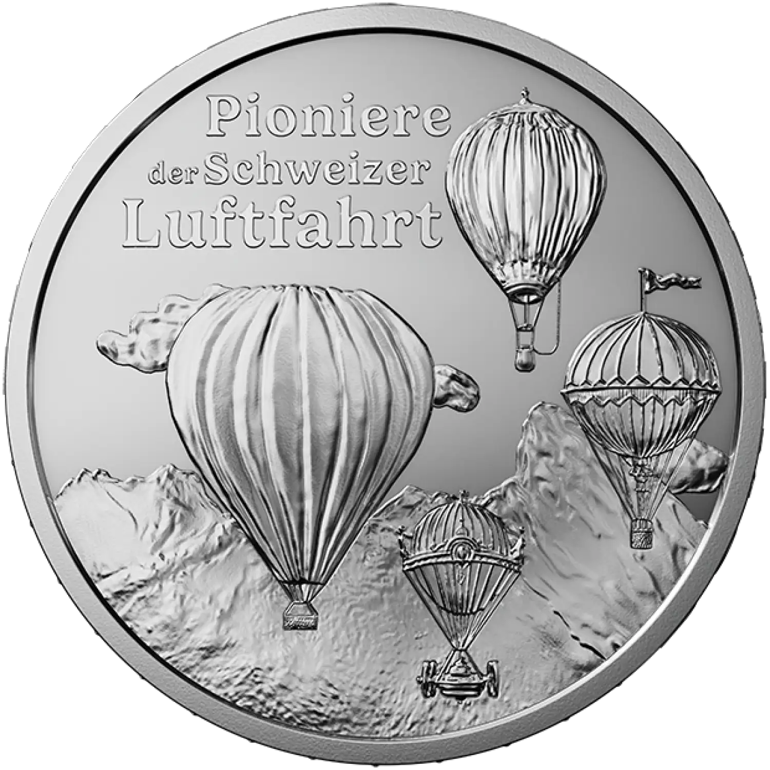 Expertly minted by the Swiss Federal Mint, this coin is crafted with the utmost precision, ensuring each piece is unique and of the highest quality. The detailed imagery on the coin captures both the essence of aviation advancement and Switzerland's dedication to excellence in craftsmanship.